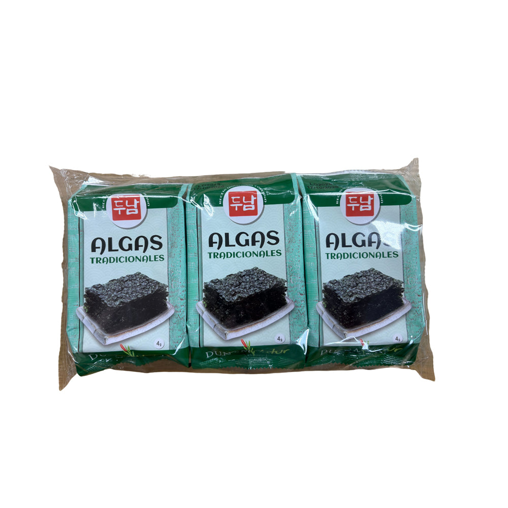 Pack 3 × 4 g – Algas tradicionales (alga nori) tostada – aperitivo saludable Dunam